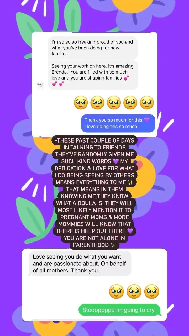 I have always been the person at the parties entertaining the children or asking the moms about their pregnancy journey. I personally know the need of having a village around you during your postpartum period and I am here to encourage parents and help them adjust to life with a newborn.